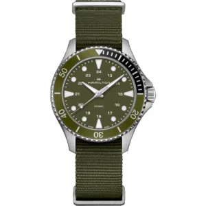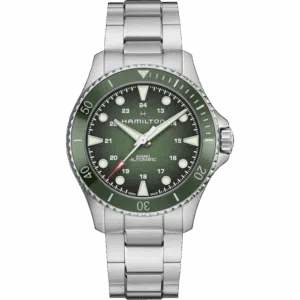La collezione Khaki Navy rappresenta l’eredità nautica di Hamilton con orologi subacquei professionali. Caratteristiche distintive: