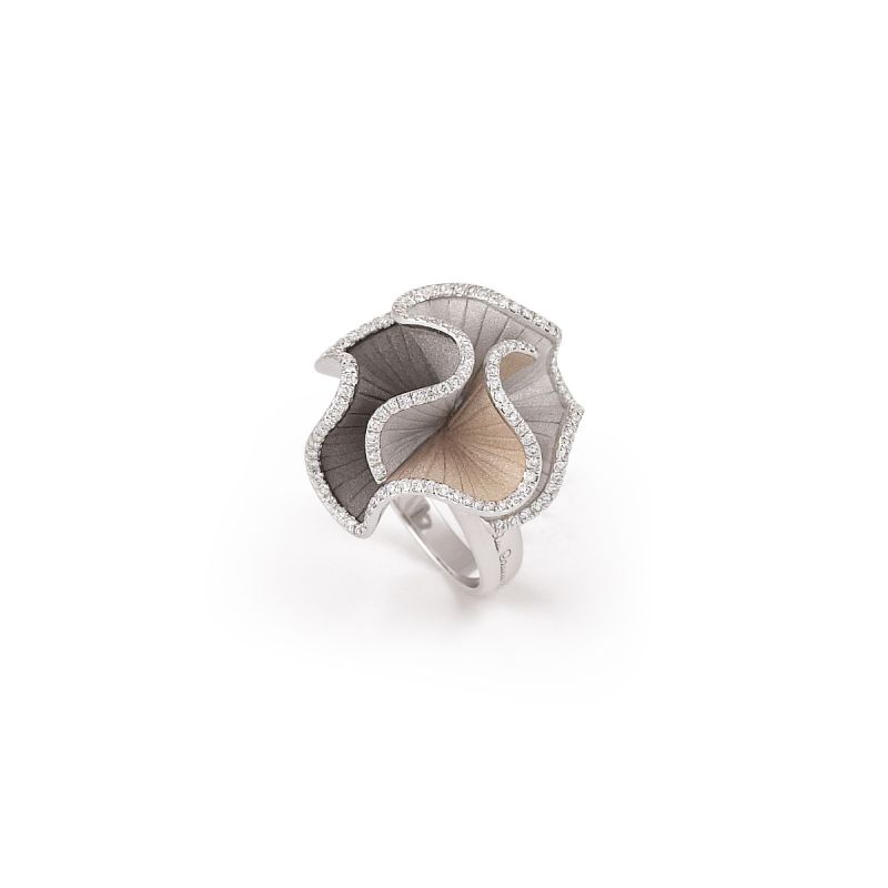Anello Serie Sultana in Oro White Ice, Natural Beige e Black Lava 18Kt con Diamanti