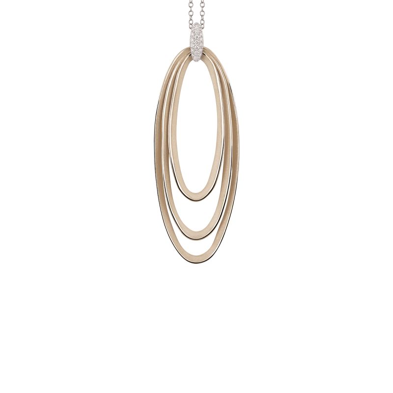 Pendente Serie Dune Chic Pavé in Oro Natural Beige18Kt con Diamanti, lunghezza catena 75 cm