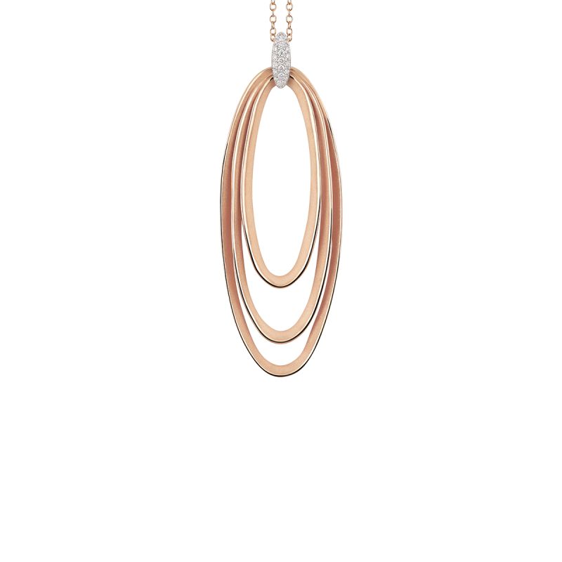 Pendente Serie Dune Chic Pavé in Oro Pink Champagne 18Kt con Diamanti, lunghezza catena 75 cm