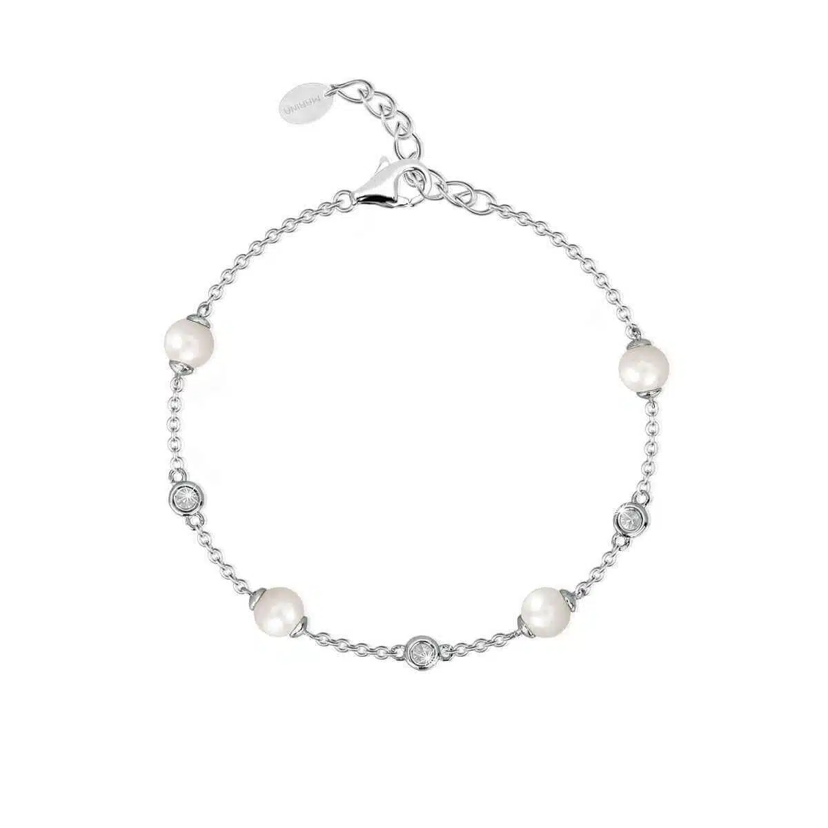 Bracciale argento 925/1000 rodiato con perle alternate a zirconi bianchi.