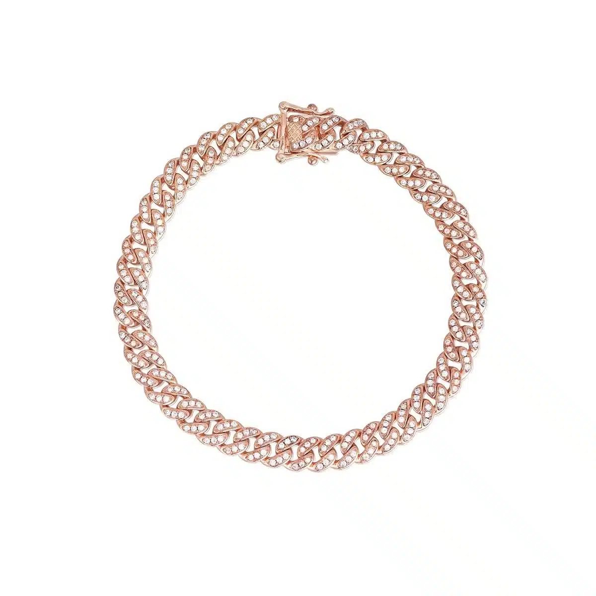 Bracciale maglie grumette in argento Rosato 925/1000 con zirconi bianchi.
