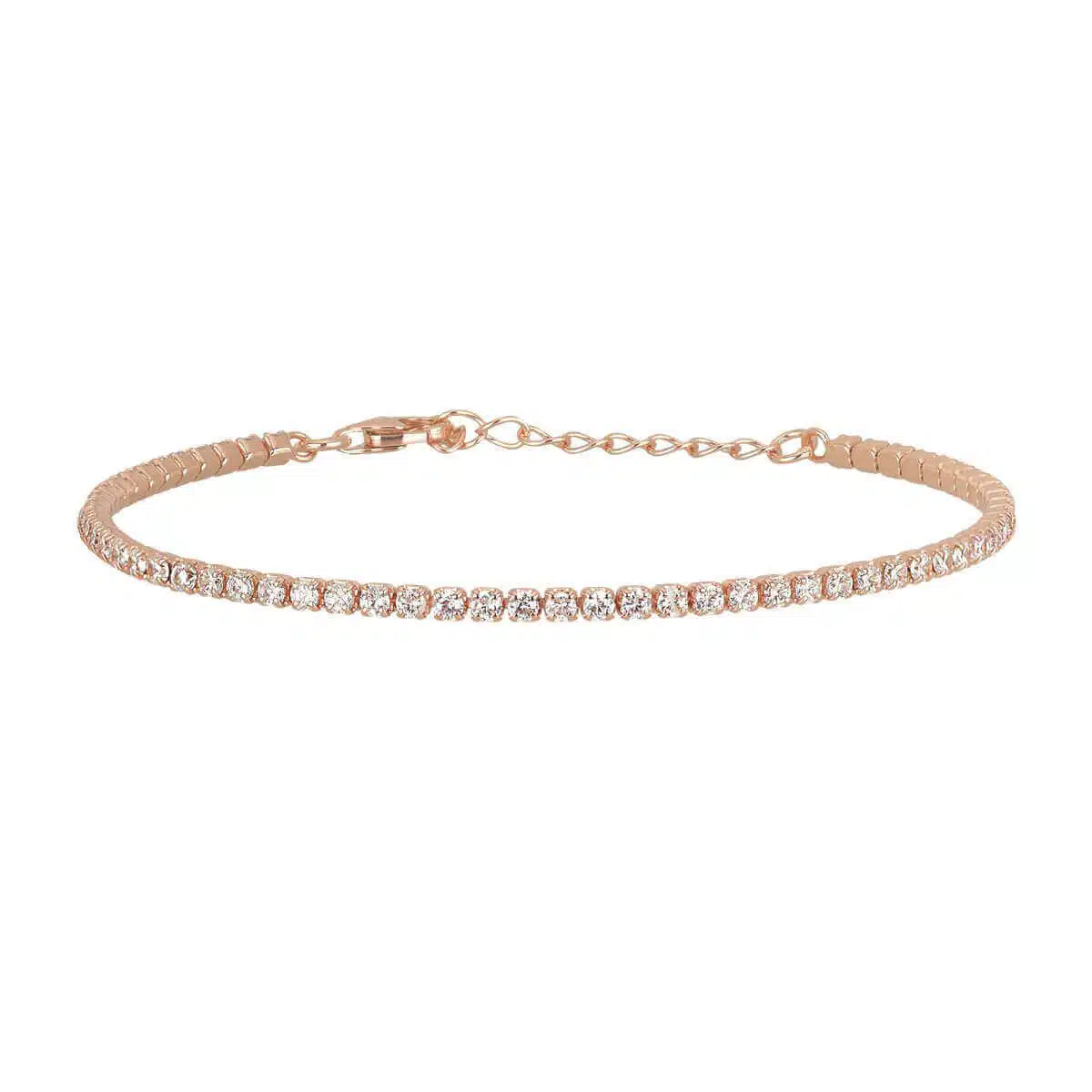 Bracciale tennis in argento 925/1000 Rosato con zirconi mm. 2 di diametro. Lunghezza minima 16 cm. con catena di regolazione per arrivare ai 19 cm.