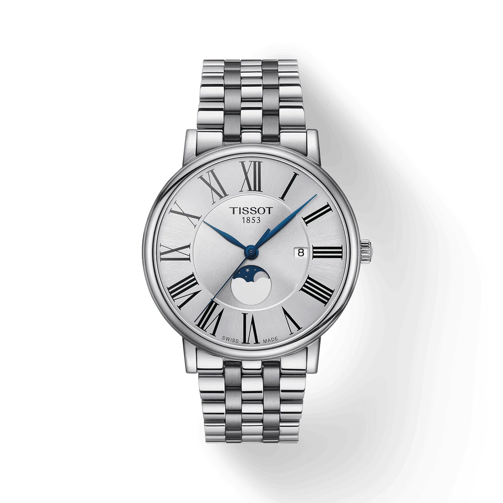 Il Tissot Carson, un capolavoro di orologeria da indossare ovunque e in ogni occasione, è il compagno ideale per rendere ogni momento un momento clou della tua vita. Con il suo design elegante, il gusto deciso e le indicazioni delle fasi lunari, la nuova collezione Tissot Carson Premium Gent Moonphase colpisce sempre nel segno.