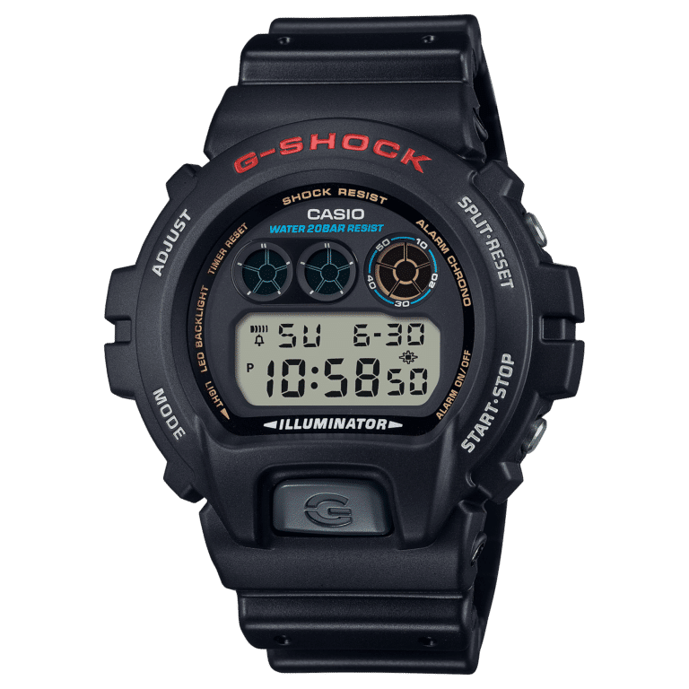 From G-SHOCK, the watch brand dedicated to the pursuit of Absolute Toughness. This G-SHOCK classic of the 6900 line gained popularity in the 1990s, taking its place as an icon of the era. The large LCD and the LED backlight make this highly versatile design a great companion for a variety of styles — from utilitarian practicality, to street trends, to sports fashion.