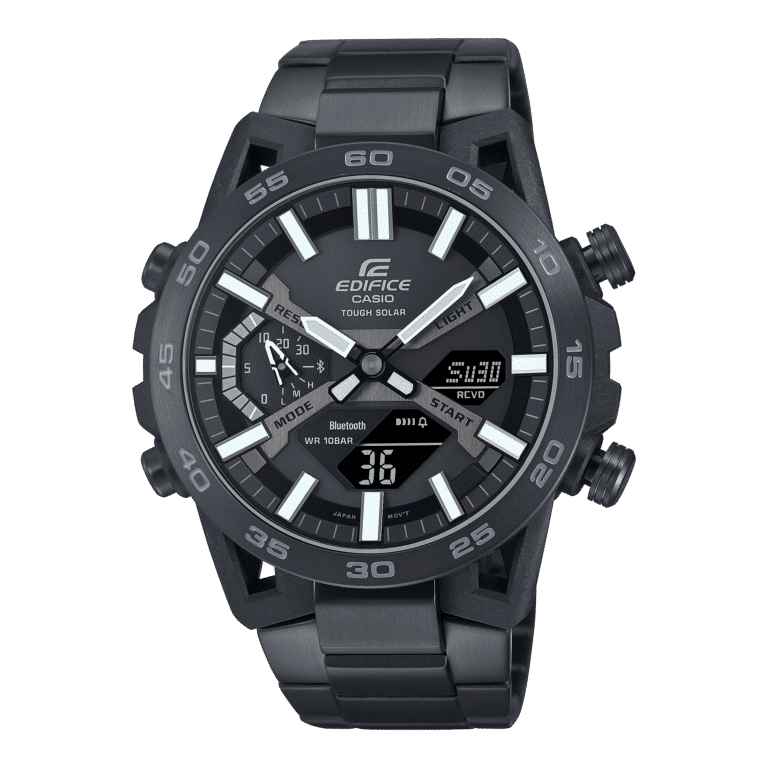 Ispirato alle sospensioni delle auto della Formula 1, l’ECB-2000 è il primo EDIFICE con cassa in resina rinforzata con fibra di carbonio e con una cassa dal design unico con le alette disposte su quattro bracci, che sono anche loro rinforzate con fibra di carbonio.