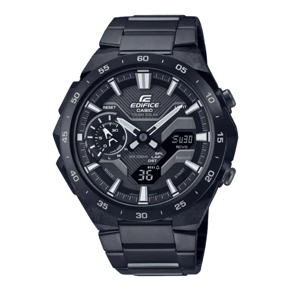 Vivi tutta l’adrenalina di una corsa su un’auto di Motorsport con EDIFICE WINDFLOW ECB-2200DD, il cronografo analogico digitale ispirato alle piste automobilistiche.