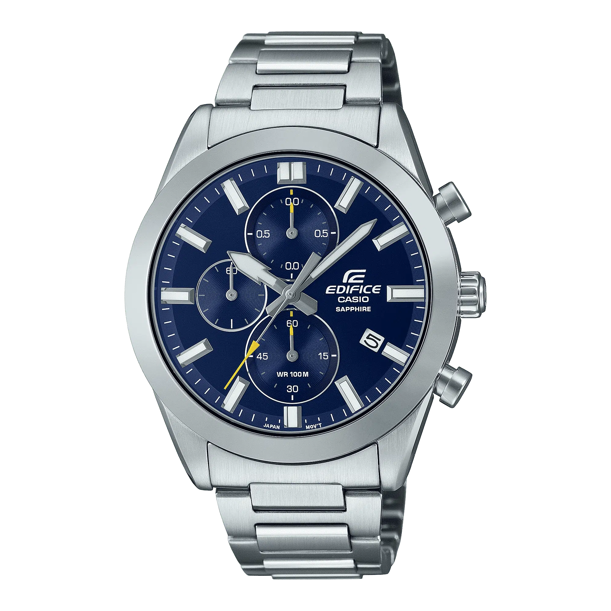 Sfoggia un look audace e sofisticato con il design e l’eleganza di un classico cronografo sportivo EDIFICE di lusso. Il cinturino in metallo massiccio, realizzato con maglie a forma di H, garantisce una vestibilità ancora più comoda al polso e il vetro zaffiro antigraffio protegge l’orologio, liberandoti da ogni preoccupazione.