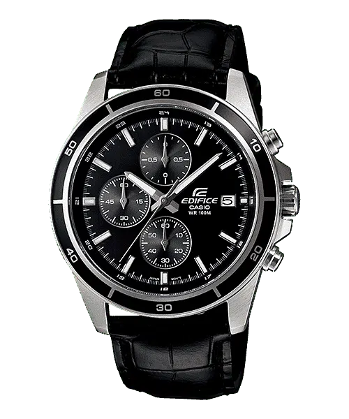 Cronografo EDIFICE standard di medie dimensioni. Cinturino in vera pelle.