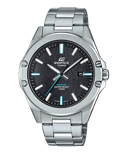 CON VETRO ZAFFIRO • Cassa sottile da 8,3 mm • Lunetta piatta • Vetro zaffiro • Impermeabile fino a 10 bar di profondità • Visualizzazione della data