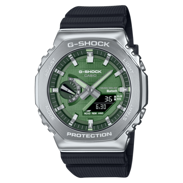 Il fascino dei metalli si fonde con un tocco sofisticato nel GBM-2100, che offre collegamento allo smartphone mediante Bluetooth® e un robusto sistema di ricarica solare, tutto in un design metallico meticolosamente rifinito con l’iconica cassa ottagonale.