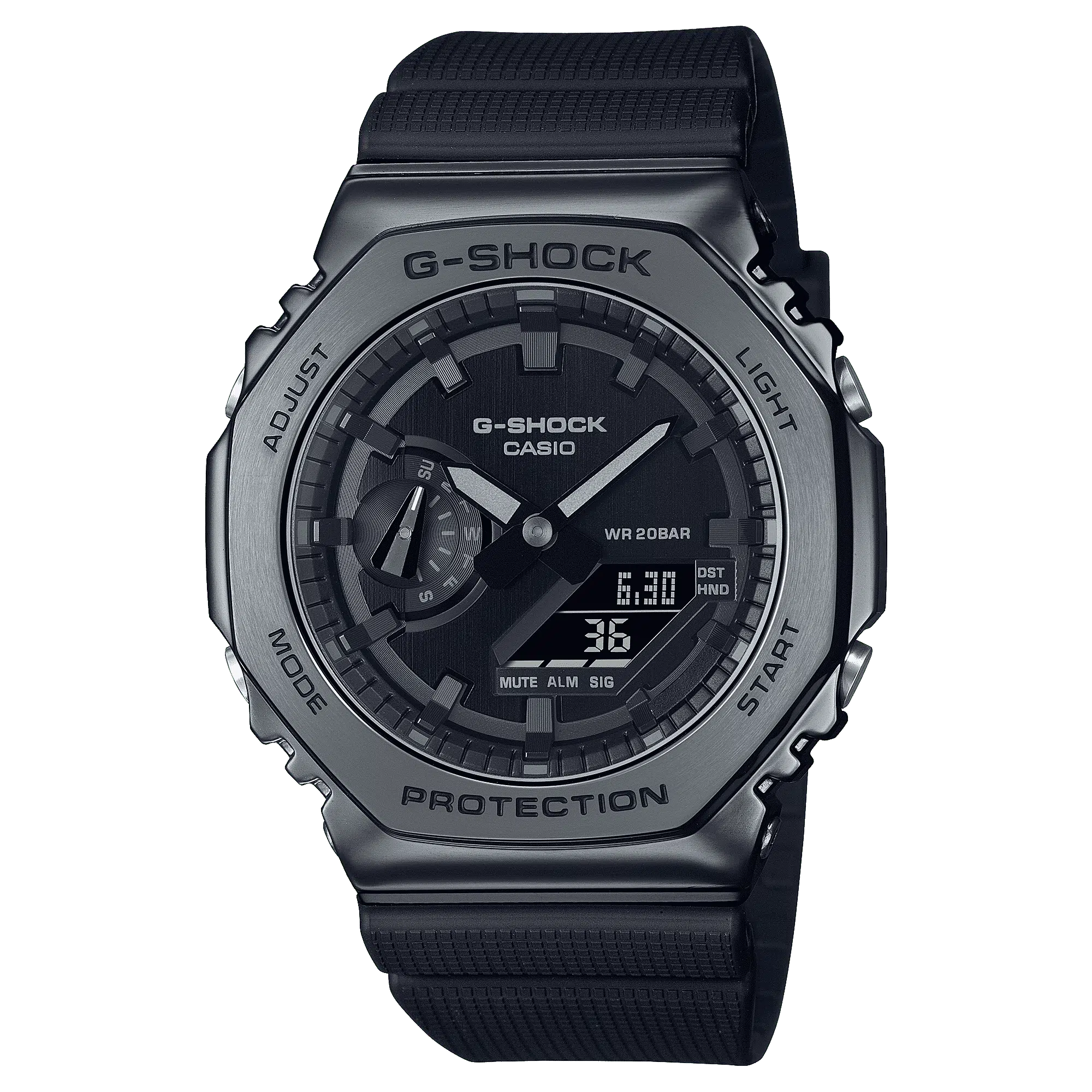 G-SHOCK GM-2100 si evolve con un nuovo modello full black dal cinturino in resina. Iconica cassa ottagonale in acciaio con finitura IP black che rende l’orologio più casual e adatto ad ogni outfit.
