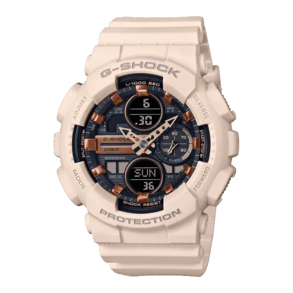 Da G-SHOCK, i resistenti orologi in continua evoluzione nella ricerca infinita di forza, un modello di dimensioni ridotte del popolare modello GA-140. Un formato compatto che si adatta perfettamente al polso mantenendo il design meccanico retro del quadrante. Per gli indici e il quadrante vengono utilizzate parti in metallo per migliorare la texture. Un G-SHOCK alla moda perfetto per l’inverno.