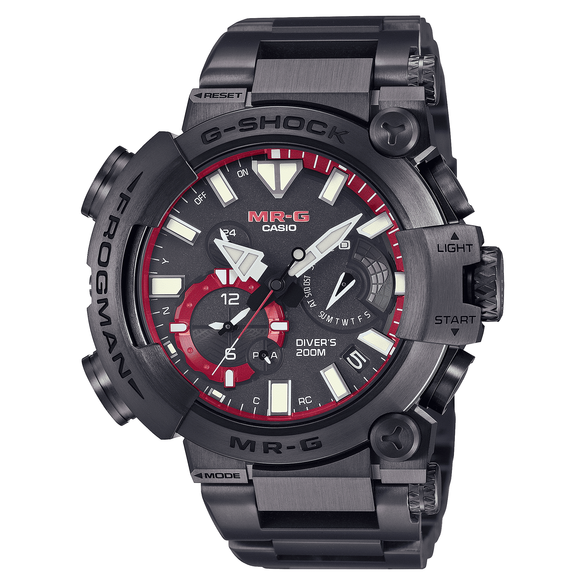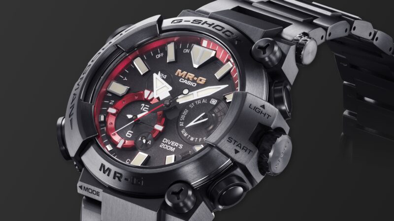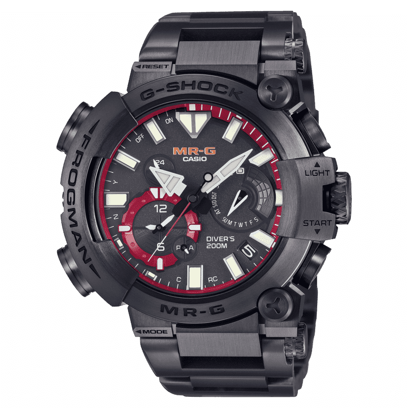Un prestigioso G-SHOCK MR-G interamente in acciaio adatto anche per il mare: il nuovo MRG-BF1000, rivestito in titanio, con un’impermeabilità ISO di 20 bar, si unisce ai veri e propri orologi subacquei della famiglia FROGMAN. Questo orologio subacqueo MR-G ha un esclusivo design asimmetrico e il fondello con chiusura a vite. Inoltre, il fondello presenta il caratteristico personaggio della rana subacquea dei FROGMAN.