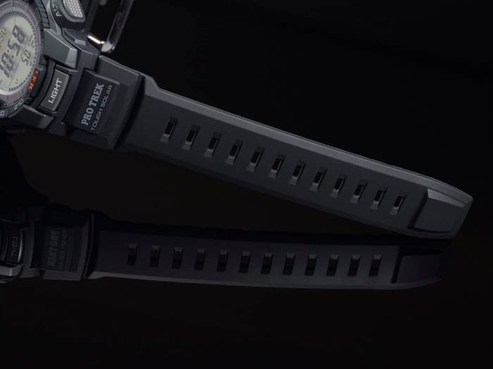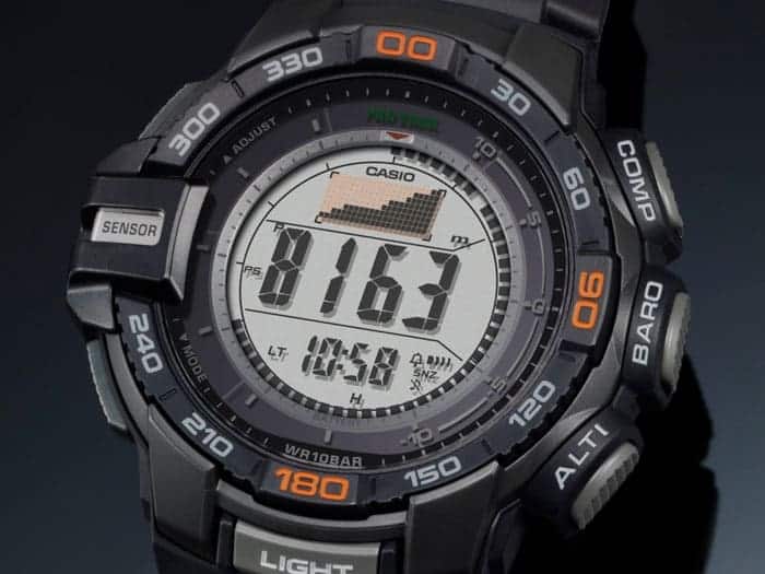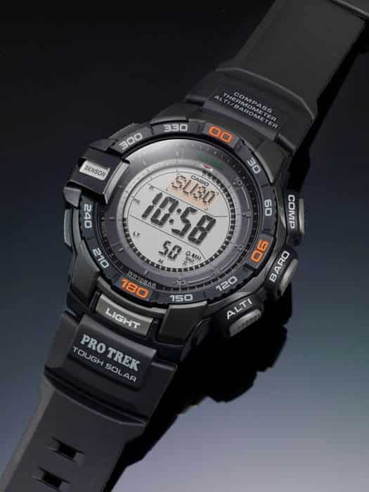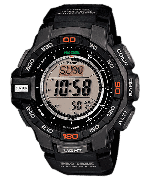 TRIPLO SENSORE Ecco il Triplo Sensore versione 3, una tecnologia avanzata originale CASIO, che consente di inserire sensori più piccoli del 95% rispetto a quelli dei modelli precedenti in un tipo completamente nuovo di PRO TREK compatto. Nonostante le dimensioni ridotte, i nuovi sensori di questi modelli offrono una maggiore precisione di lettura e una maggiore efficienza energetica. Questi modelli a tre sensori forniscono valori di altitudine, pressione barometrica e direzione più precisi rispetto ai modelli precedenti, mentre un allarme di tendenza della pressione barometrica avvisa chi lo indossa in caso di variazioni improvvise dei valori di pressione. Le caratteristiche del design includono una cassa progettata per le prestazioni outdoor. Gli ampi pulsanti laterali e l’accesso con un solo tasto alla bussola digitale, alla pressione barometrica, all’altitudine e alle letture della temperatura consentono di avere a portata di mano informazioni importanti. Altre caratteristiche includono la ricarica solare impermeabilità fino a 100 metri di profondità e altro ancora. Tutti questi modelli sono disegnati e progettati come oggetti essenziali per le attività outdoor. • Il Tough Solar garantisce l’operatività stabile anche quando si utilizzano funzioni che consumano molta energia. • Triplo sensore: Bussola, barometro/termometro, altimetro • Resistente alle basse temperature (-10 °C/14 °F)