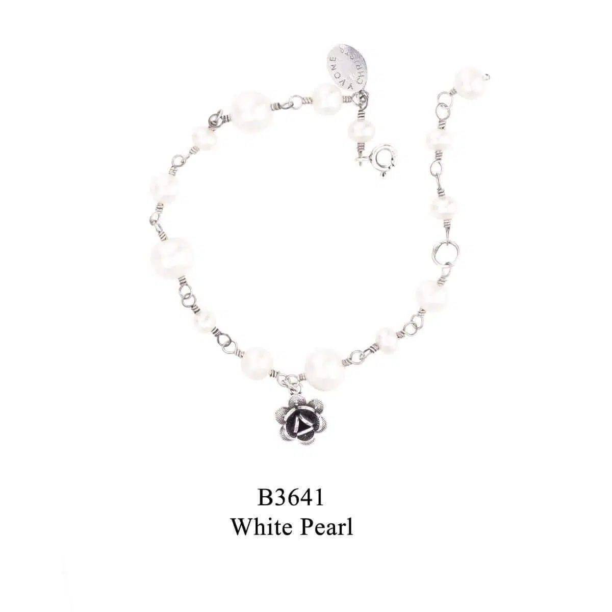 Bracciale in argento 925 con perle naturali crema e inserto pendente a forma di  Rosa..lo stile Yvone Christa.