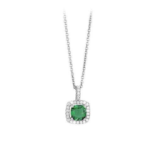 Collana argento 925/1000 rodiata con pendente zircone verde (smeraldo sintetico) e zirconi bianchi.