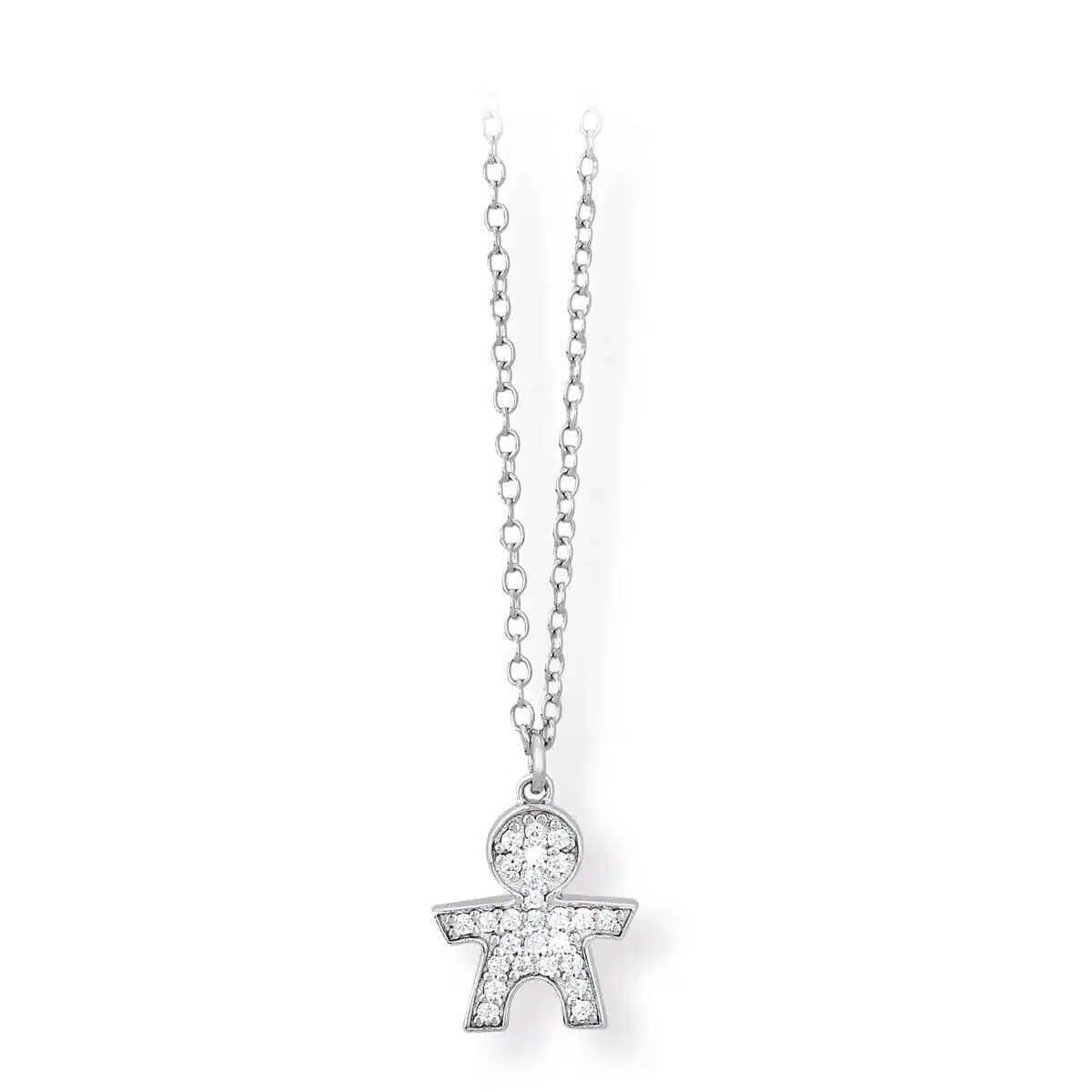 Collana in argento 925/1000 con pendente bebè Maschio con zirconi bianchi.