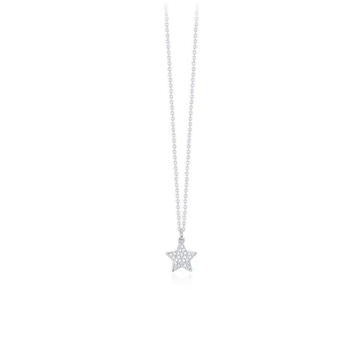Collana in argento rodiato 925/1000 con pendente stella zirconi bianchi.