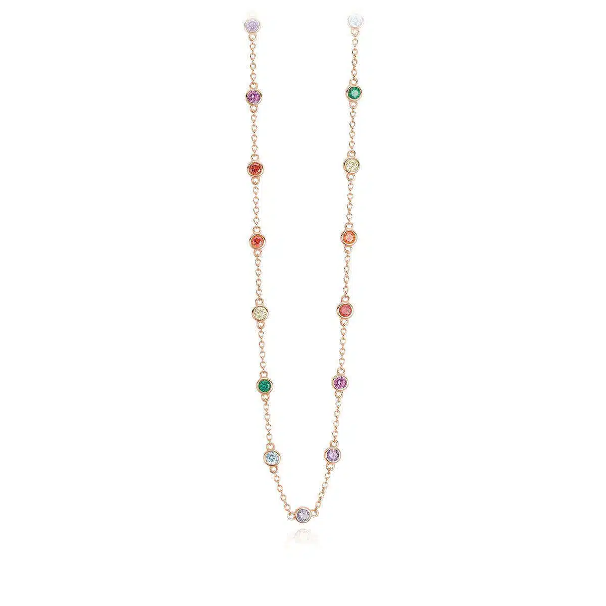 Collana in argento rosato 925/1000 con zirconi colorati arcobaleno, mm. 3 di diametro.