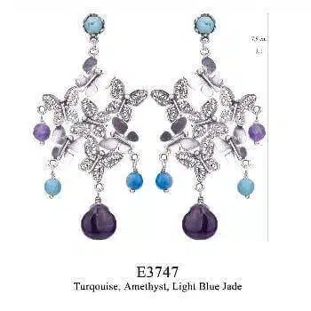 Pendenti in argento 925 composti da farfalle e pietre naturali, turchesi, ametiste,