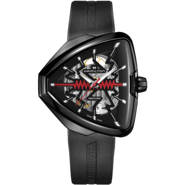 Sii audace con il Ventura Elvis80 Skeleton: un omaggio ultramoderno al passato, presente e futuro del primo orologio elettrico al mondo. Un’evoluzione potente di un segnatempo rivoluzionario: il quadrante scheletrato presenta un tratto grafico a zigzag al centro dell’elegante cassa a scudo con rivestimento in PVD nero. Questa sferzata di energia celebra un iconico simbolo di innovazione e attira lo sguardo sul movimento automatico H-10-S, visibile attraverso la scheletratura.