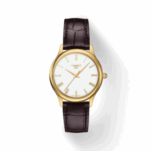 La collezione Excellence Gold brilla nella sua semplicità e forma più pura. l’excellence Lady è un orologio in oro 18 carati che è stato progettato pensando alla sottigliezza e alla semplicità. Questo orologio delicato è particolarmente sottile, principalmente indossato come un gioiello, scolpisce con grazia le linee di qualsiasi polso. In un colpo d’occhio, l’iconica T di Tissot può essere facilmente ammirata attraverso una pietra cabochon trasparente sulla parte superiore della corona. Il quadrante è disponibile in una madreperla completamente naturale con sfumature blu notte o marrone cioccolato, che enfatizzano entrambi gli indici dei diamanti Top Wesselton.