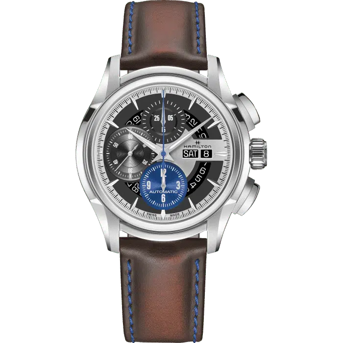 — Carica automatica — Cronografo con lancetta dei secondi cronografici attiva su entrambi i lati della cassa — Funzione giorno e data — Riserva di carica estesa da 60 ore — Movimento con fini