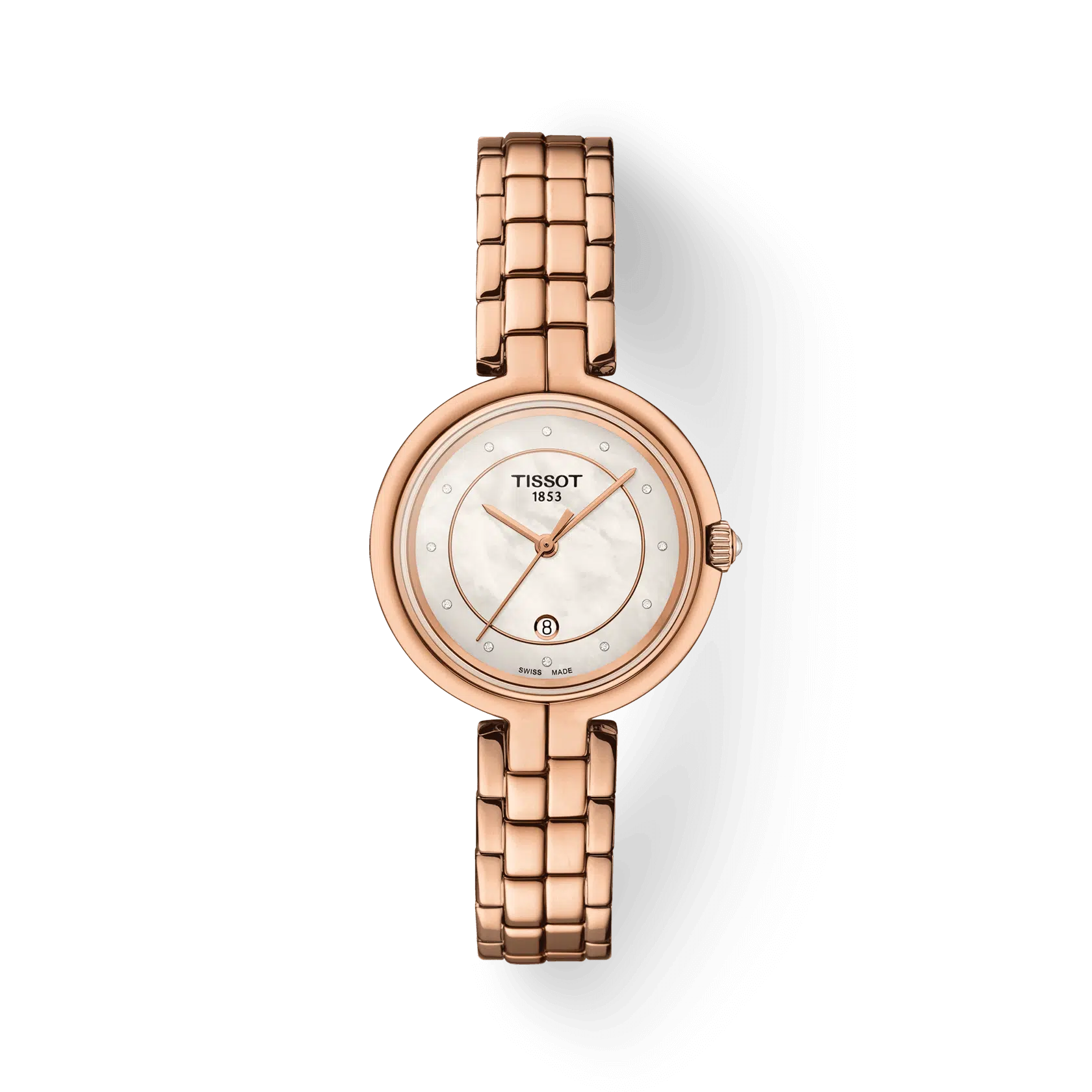 Il grazioso equilibrio del Tissot Flamingo non lascia indifferenti. La sua cassa rotonda contrasta con il suo bracciale fine. Offre una scelta di quadrante nero, bianco o madreperla, completato da un bracciale in acciaio inossidabile, oro o bicolore con chiusura a farfalla, o in pelle con fibbia standard. Protetto da un vetro zaffiro antigraffio, ogni modello ospita un movimento al quarzo di fabbricazione svizzera.
