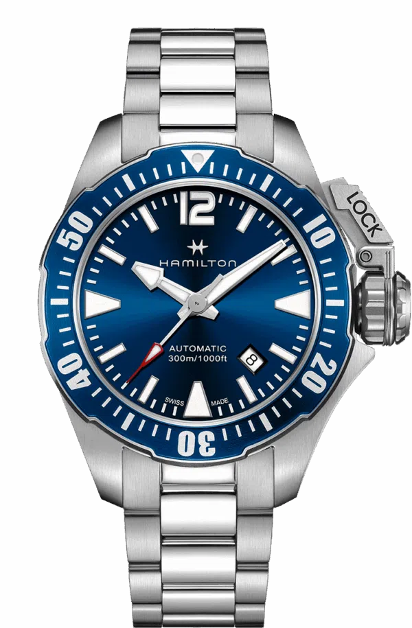 Creato per i sommozzatori della Marina americana e apparso nel celebre film del 1951 Le rane del mare, questo nuovo orologio dispone di funzioni subacquee di livello assoluto. La sua cassa in acciaio da 42 mm ospita una lunetta girevole nera unidirezionale in acciaio ed è impermeabile fino a 30 bar/300 metri.