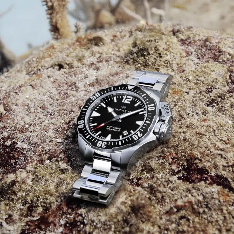 L’Hamilton Frogman originale era stato creato per i sommozzatori della Marina americana ed è apparso nel celebre film del 1951 “Le rane del mare”. Da allora sono passati quasi 70 anni e la tecnologia ha fatto passi da gigante nell’orologeria. Le caratteristiche essenziali che hanno decretato il successo dell’orologio, non inferiore a quello del film, sono però le stesse: lunetta girevole unidirezionale, elevata impermeabilità e luminescenza subacquea.