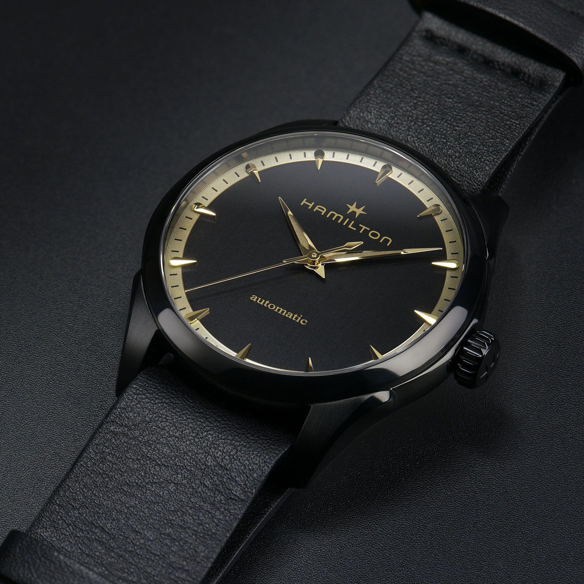 Questa nuova collezione bi-color è un tributo al glamour hollywoodiano. Si tratta di una reinterpretazione in chiave black&gold di 5 modelli iconici di Hamilton: Jazzmaster Auto 36 mm, Jazzmaster Auto Chrono 42 mm, Pan Europe, Ventura Chrono Quartz e Ventura S. Giocando sui contrasti di colore, questa capsule collection è un chiaro rimando al grande schermo.