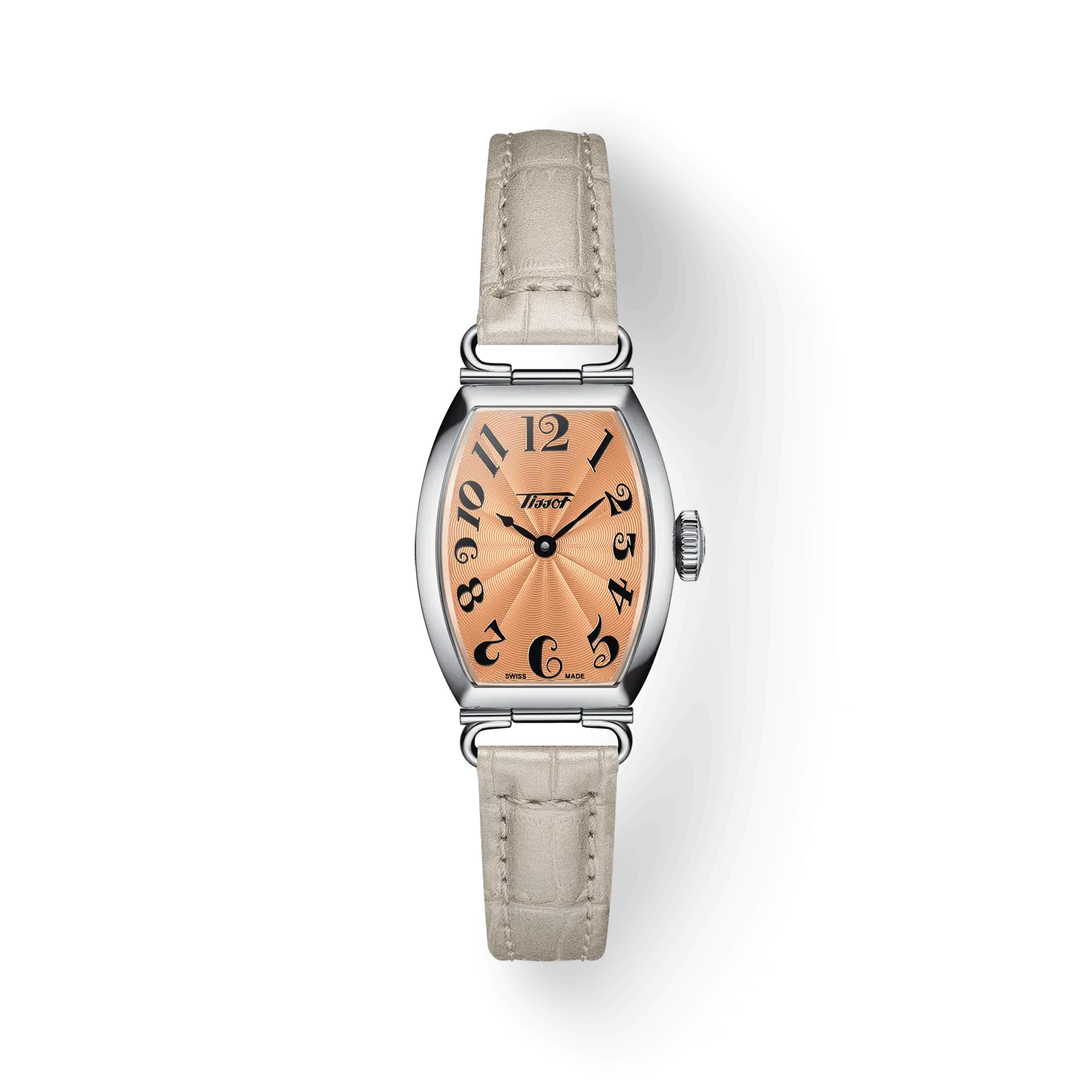 Tissot ha catturato lo spirito dell’ Art Nouveau con la sua collezione Heritage Porto, che ha le sue radici in un orologio del 1910. La collezione donna Heritage Porto è disponibile in versione al quarzo e colpisce per la cassa tonneau elegantemente curva, grandi numeri arabi in tipografia Art Nouveau, lancette a pera e anse mobili di ispirazione storica. Il fondello è curvo per adattarsi alla forma del polso e la corona è posizionata in modo che non sfreghi contro il polso. Questo modello con movimento al quarzo Swiss-Made ha una cassa tonneau in acciaio inossidabile 316L lucido e lati spazzolati. La cassa in acciaio inossidabile 316L ha un rivestimento PVD. Il vetro minerale bombato antiriflesso protegge il quadrante.