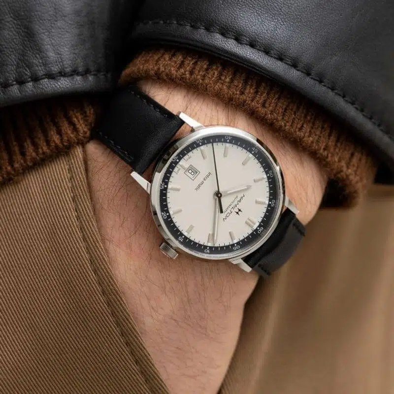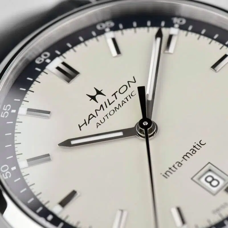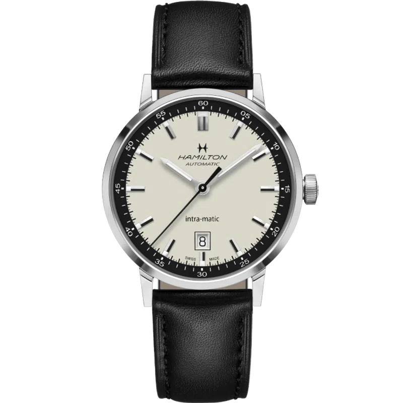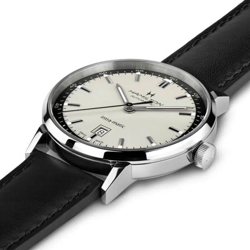 Con uno straordinario quadrante bicolore, l’Intra-Matic Automatic presenta uno stile d’ispirazione vintage che lo rende la scelta giusta da indossare sia in ufficio sia per un weekend fuori porta. Animato dall’esclusivo movimento H-10, caratterizzato dalla lega anti-magnetica Nivachron, questo inconfondibile segnatempo da 40 mm è preciso, affidabile e ricco di personalità.