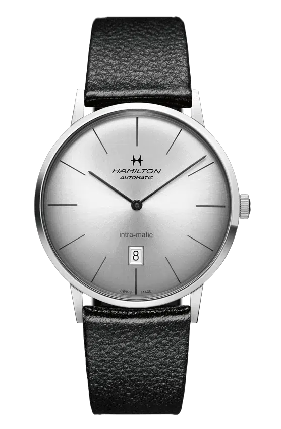 Con un orgoglioso omaggio a un best seller Hamilton dei tempi che furono, il nuovo segnatempo afferma il suo carattere elegante grazie alla purezza del design. Il quadrante nero o argentato è bombato e accoglie due lancette leggermente incurvate, espressione della quintessenza dell’orologeria Hamilton