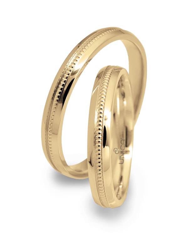 Anelli nuziali con lavorazione pallinata che si sviluppa al centro dell’anello sull�intera circonferenza. Effetto estetico di pregio, nella sua semplicit�. L�esterno � arrotondato e l�interno leggermente comfort per renderle facilmente indossabili.