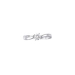 Anello solitario in argento 925/1000, rodiato, con zircone bianco.
