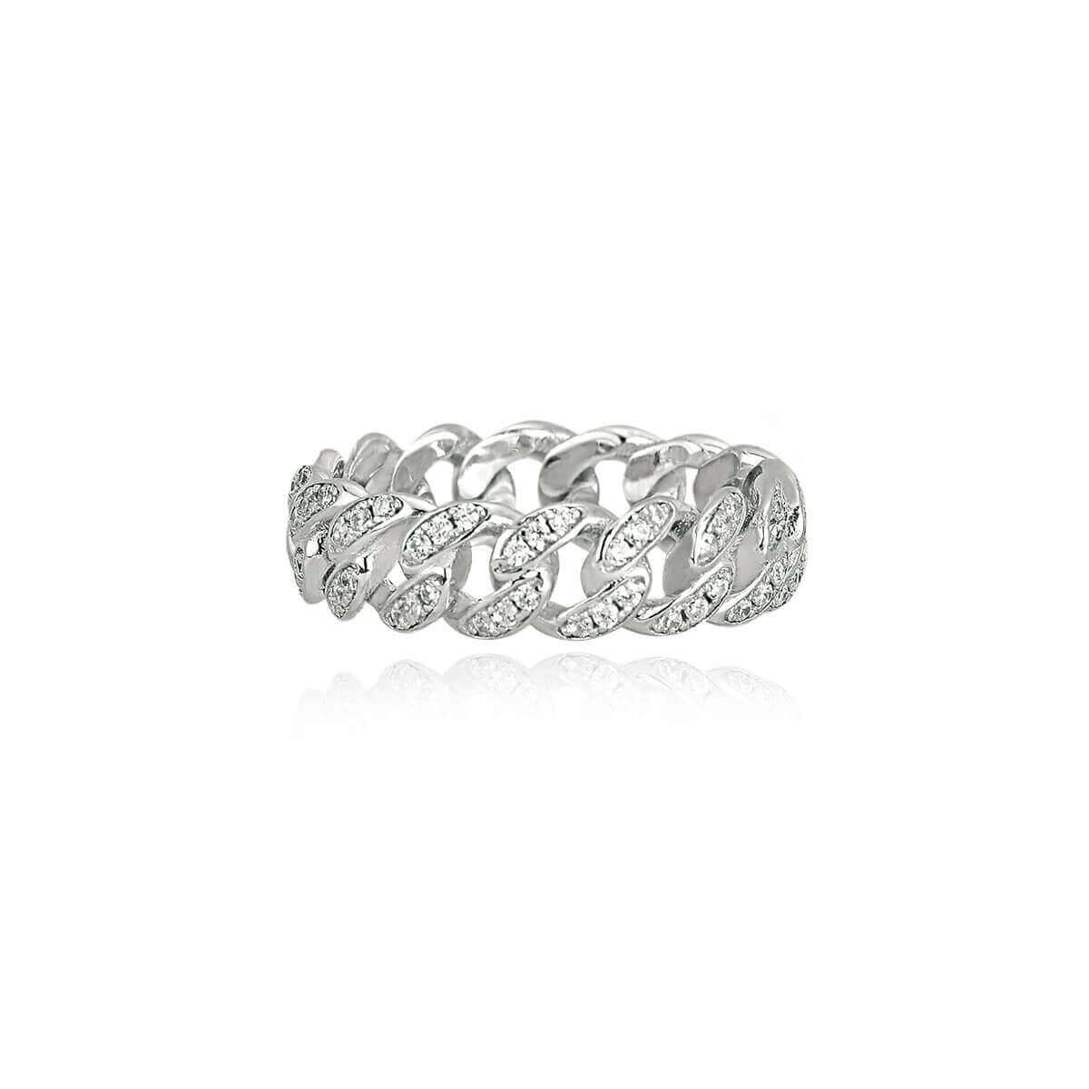 Anello a maglie grumette in argento rodiato 925/1000 con zirconi bianchi.