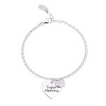 Bracciale in argento 925/1000 con 2 pendenti a cuore, uno in solo argento, l'altro in argento e zirconi………SUPERMAMMA!!!!