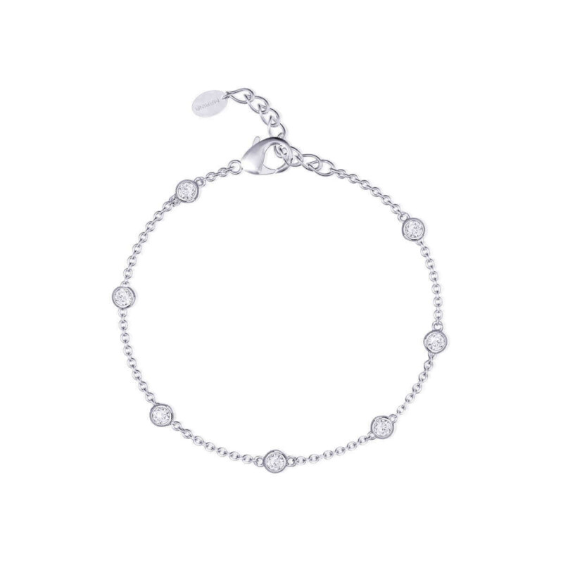 Bracciale argento 925/1000 con zirconi bianchi, lunghezza massima cm 19 con catena di regolazione.