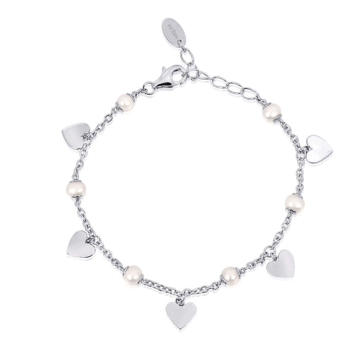Bracciale argento 925/1000 rodiato con perle coltivate e zirconi bianchi.