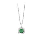 Collana argento 925/1000 rodiata con pendente zircone verde (smeraldo sintetico) e zirconi bianchi.