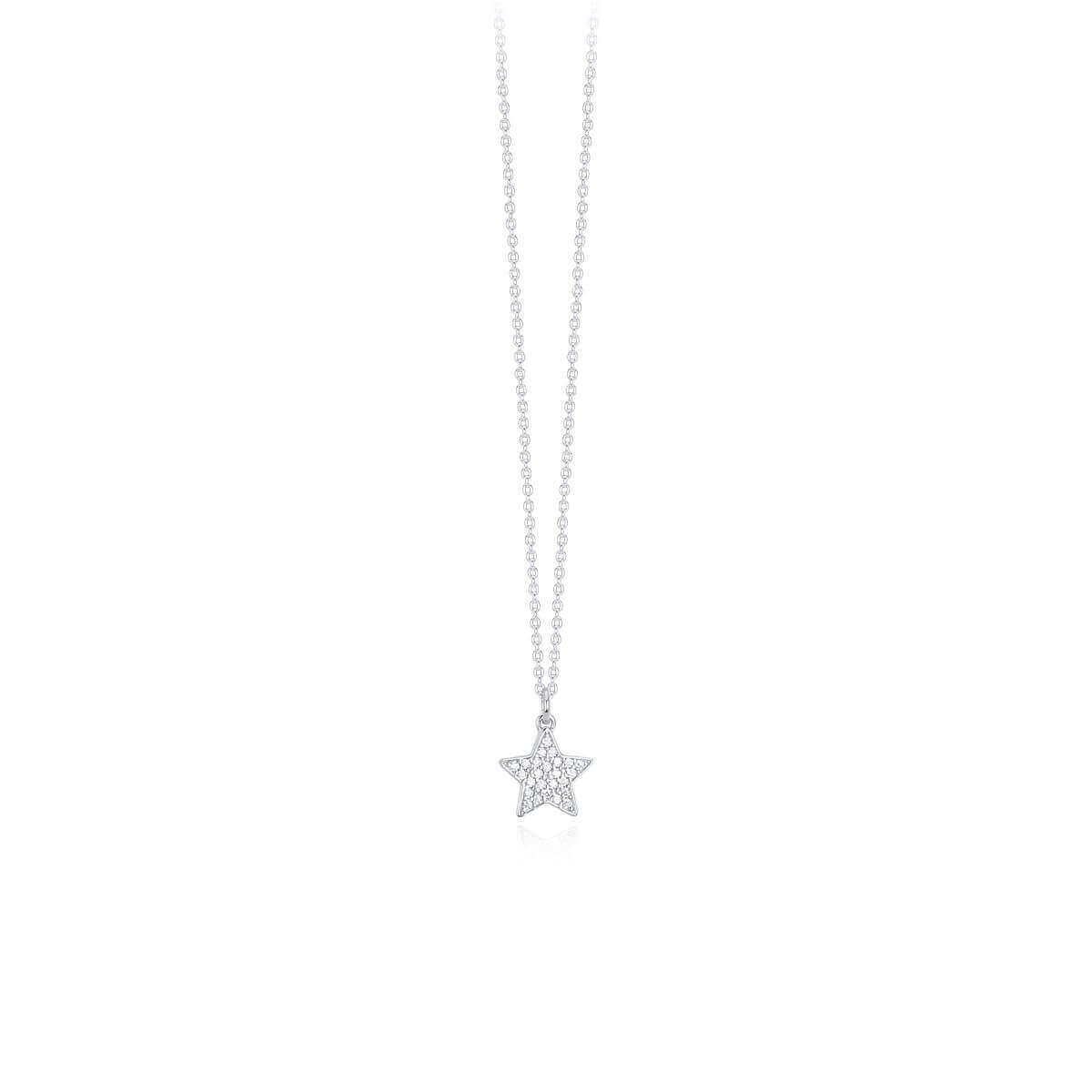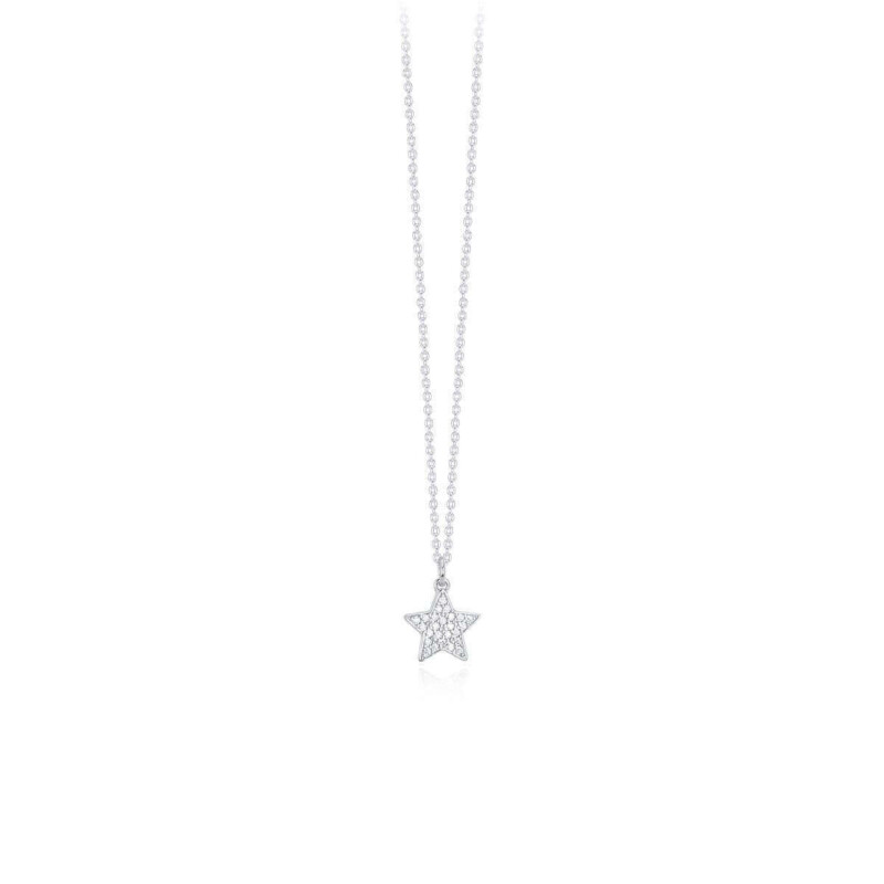 Collana in argento rodiato 925/1000 con pendente stella zirconi bianchi.