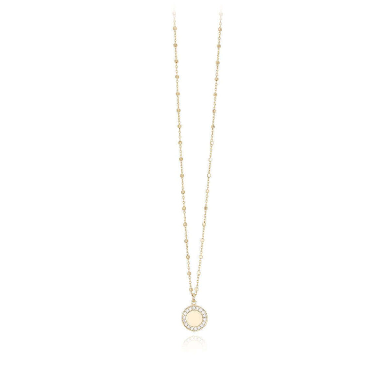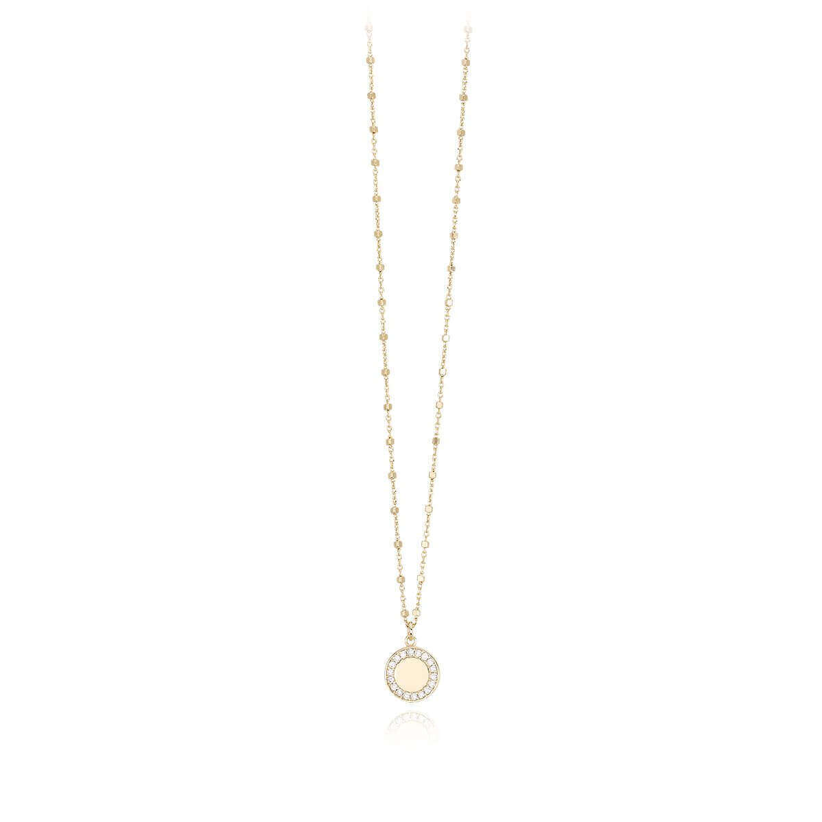 Collana catena argento 925/1000 dorata, con pendente argento dorato e zirconi. Lunghezza regolabile da 40 a 45 cm