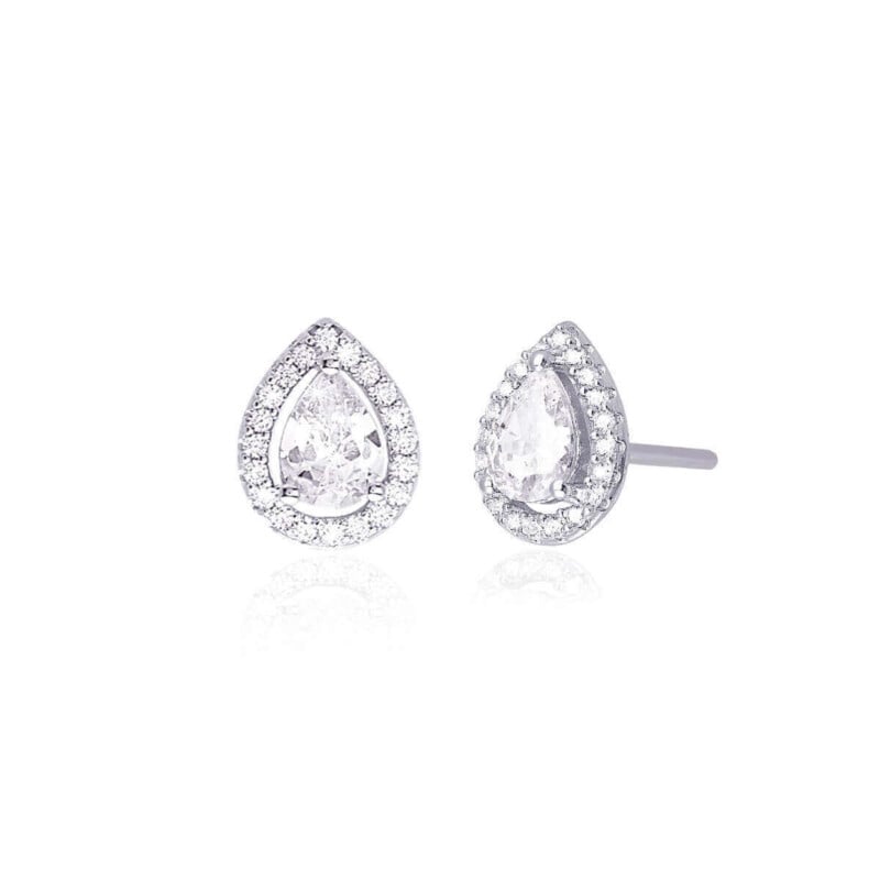 Orecchini in argento 925/1000, rodiati, a forma di goccia con zirconi bianchi.