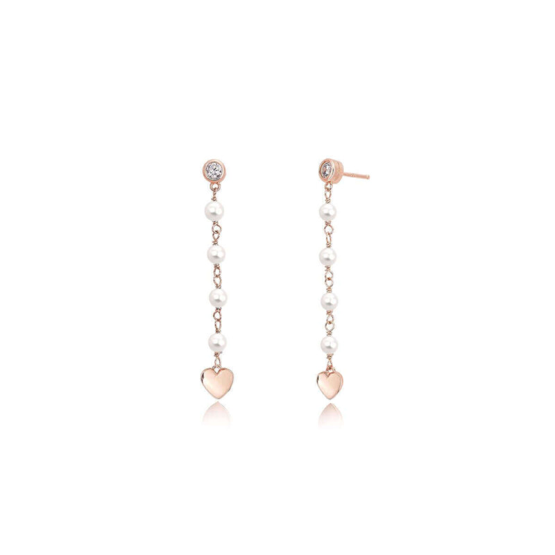 Orecchini in argento Rosato con perle coltivate mm. 3/3,5, zirconi e cuori.