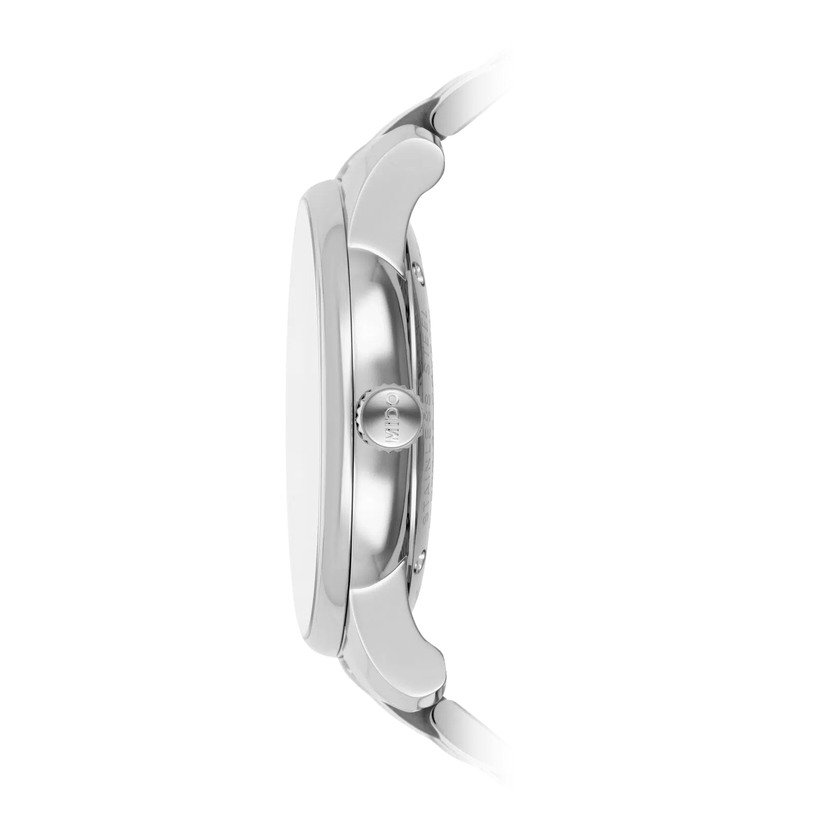 Per i suoi componenti, MIDO utilizza esclusivamente acciaio inox di alta qualità, minuziosamente lavorato in varie finiture. Ipoallergenico e facile da mantenere, questo materiale è resistente alla corrosione e ai campi magnetici e offre una maggiore durata.