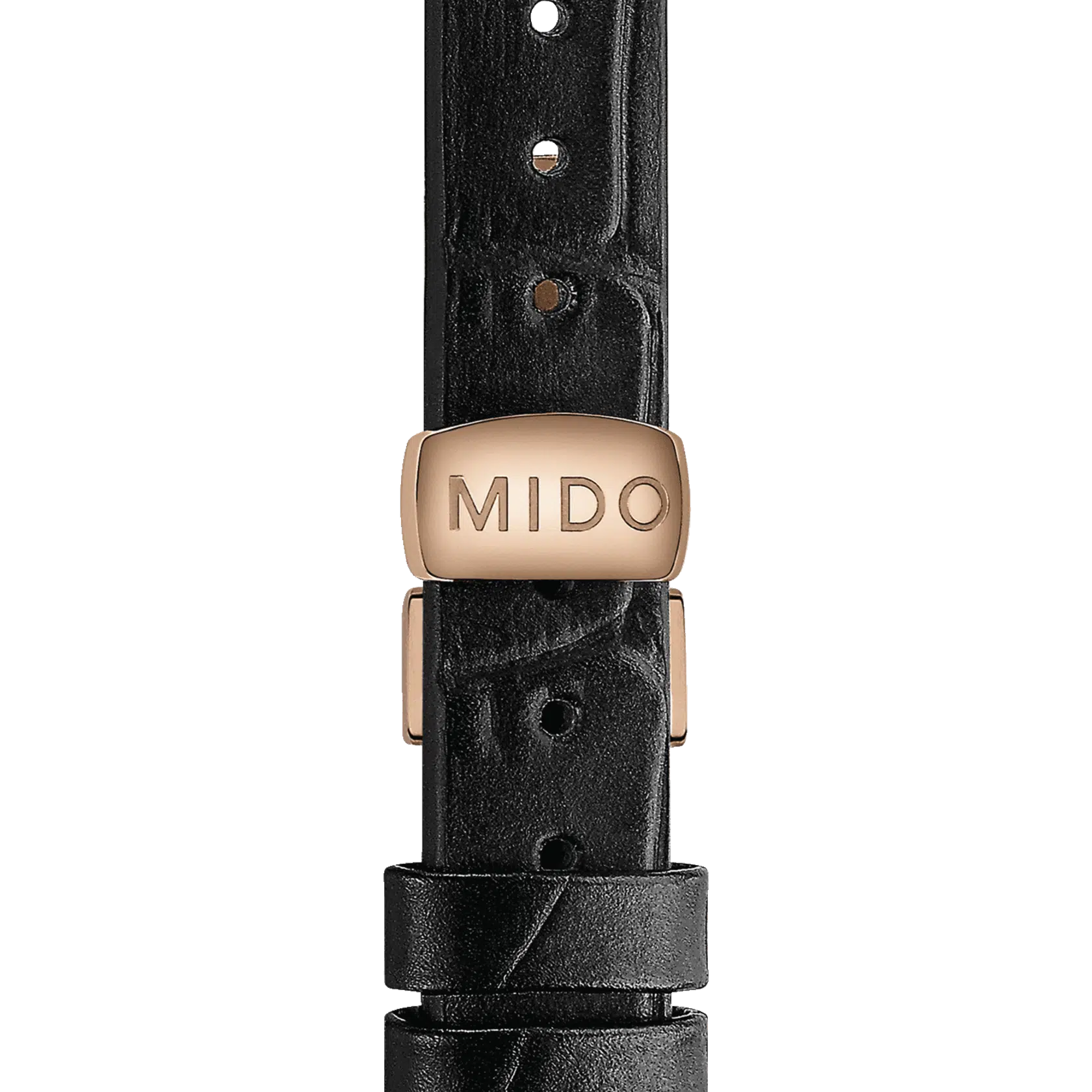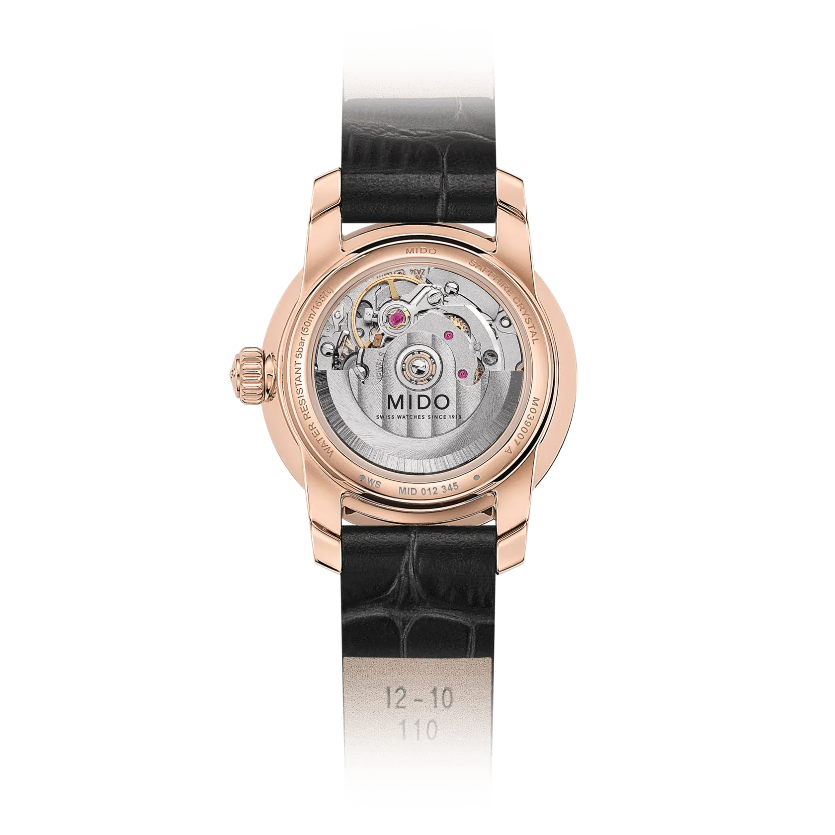 Conforme ai rigorosi criteri dell’orologeria, il movimento automatico MIDO testimonia le competenze del marchio. Si ricarica con i movimenti del polso, offrendo una riserva di carica continua. Dotato di componenti di alta qualità, è spesso finemente decorato e visibile attraverso il fondello trasparente.