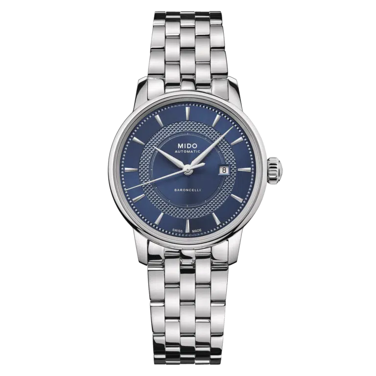 Con il Baroncelli Signature, MIDO ha creato un successo meccanico ed estetico che è la perfetta espressione del suo know-how orologiero. Estremamente chic e senza tempo, questo orologio svizzero presenta un movimento automatico arricchito da una spirale in Nivachron™. Garanzia di precisione, questa nuova spirale riduce l’effetto dei campi magnetici oltre a resistere agli urti e agli effetti del tempo.Garanzia di precisione, questa nuova spirale riduce l’effetto dei campi magnetici, oltre a resistere agli urti e agli effetti del tempo.