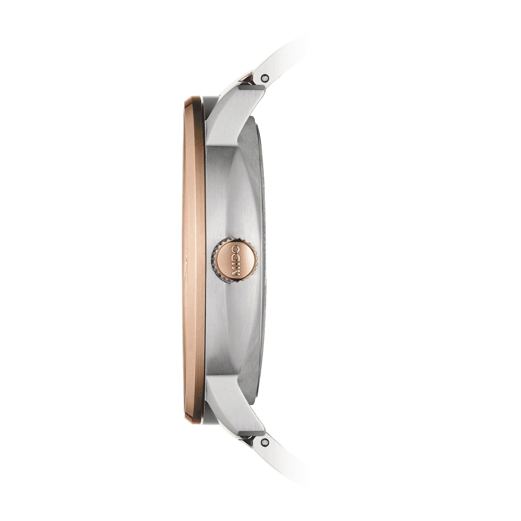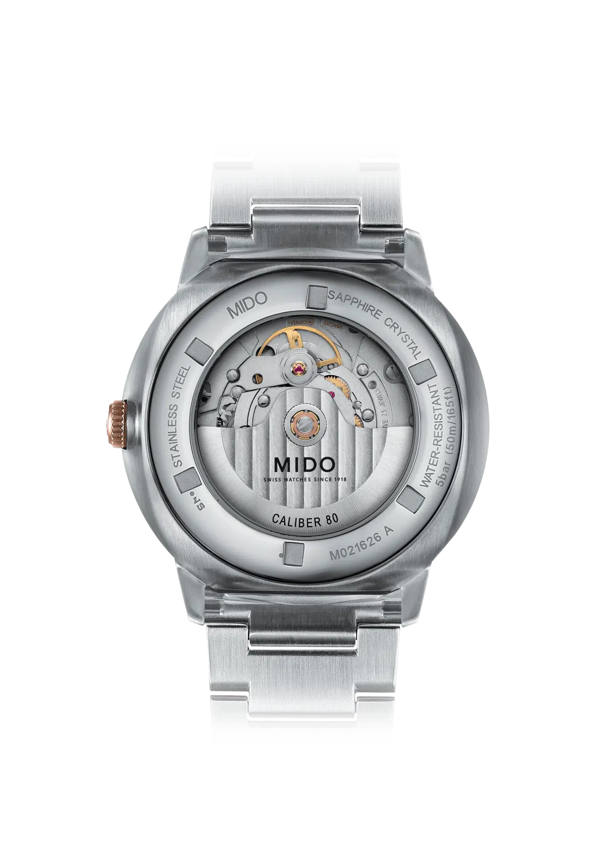 The MIDO Caliber 80 represents a major advance in self-winding movements. Thanks to its new-generation technology, it offers up to 80 hours of power reserve – twice as much as a conventional movement.